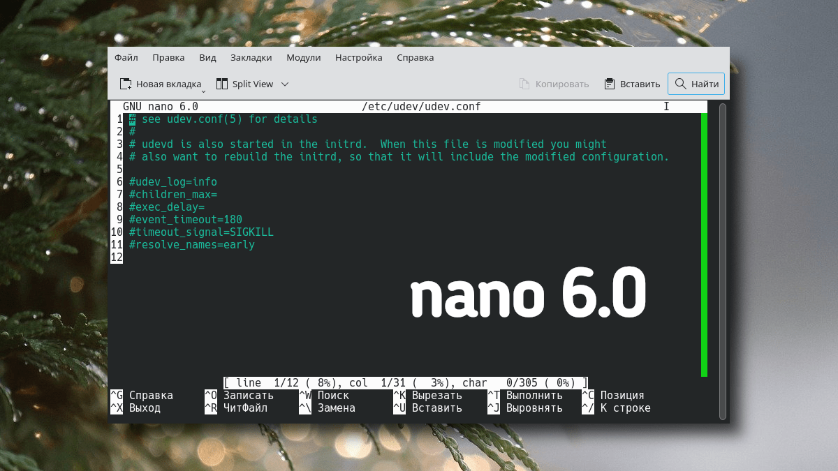 Также консольный текстовый редактор Nano 6 можно настраивать на свой вкус. В нем меняется цветовая гамма, размер шрифта и т.д, присутствует подсветка синтаксиса файлов.